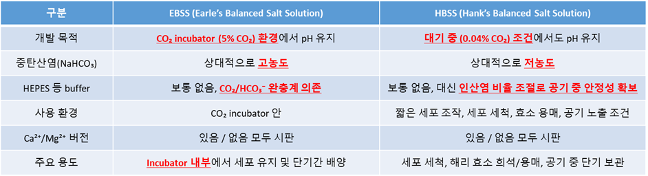 ● Ca²⁺/Mg²⁺는 cadherin·integrin 같은 접착 단백질의 활성 유지에 필요한데, 이온이 있으면 세포-세포/세포-기질 접착이 강해져 해리가 어려움 그래서 trypsin 같은 효소는 보통 Ca²⁺/Mg²⁺가 없는 HBSS에 녹여 사용 → 따라서 Ca²⁺/Mg²⁺ free HBSS는 세포 접착을 약화시켜 효소 작용을 도와 세포 해리가 더 잘 일어남 ● 해리 후 세포를 다시 ECM(Extracellular Matrix)에 붙이거나 기능을 유지할 때는 Ca²⁺/Mg²⁺가 포함된 HBSS를 사용 해리 과정 → Ca²⁺/Mg²⁺ free HBSS, 해리 후 세포 안정화 → Ca²⁺/Mg²⁺ containing HBSS ▶ 관련 제품 링크