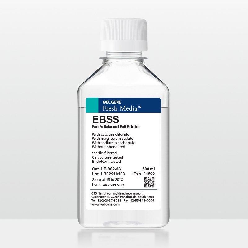 EBSS의 세포 배양 유지능력은 EBSS에 적당 시간 방치한 세포주를 적합한 배지로 옮겨 시험합니다. 성장 속도는 세 번의 계대 배양을 통하여 측정하고 표준품으로 시험한 것과 비교합니다.