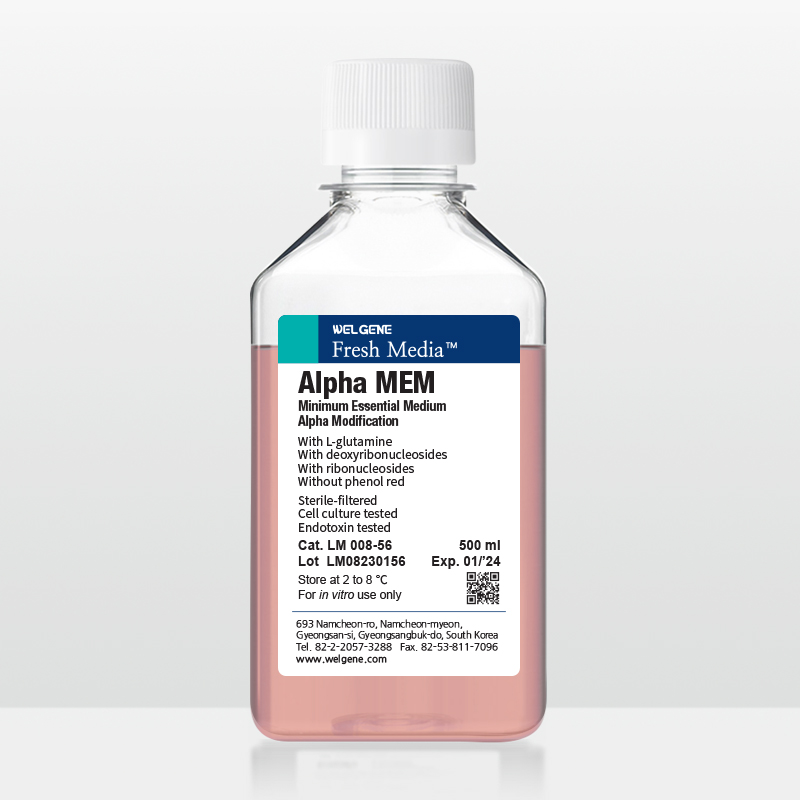 Minimum Essential Media, Alpha Modification (Alpha MEM)은 외래 DNA를 동물세포로 transfection시키기에 적당하도록 MEM에 아미노산 및 비타민이 강화되었습니다.