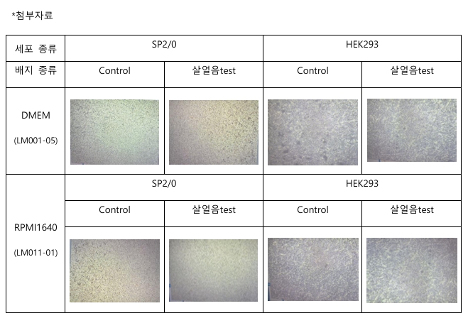 그 결과 외관, pH, Osmolality, D-Glucose, Sterility Test, Endotoxin Test, Cell Culture Test에서 차이가 없음을 확인하였습니다.