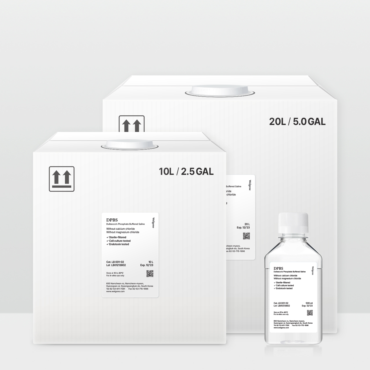 D-PBS의 세포 배양 유지능력은 D-PBS에 적당 시간 방치한 세포주를 적합한 배지로 옮겨 시험합니다. 성장 속도는 세 번의 계대 배양을 통하여 측정하고 표준품으로 시험한 것과 비교합니다.